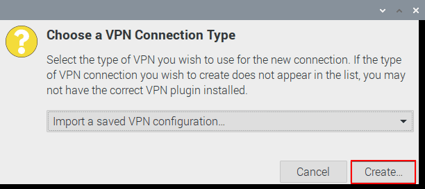 5. Select Import a saved VPN configuration... and press the Create... button.