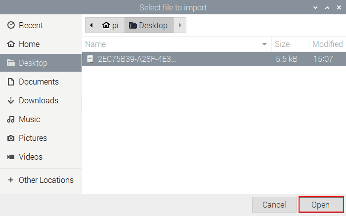 6. Choose the OpenVPN® configuration file that was previously downloaded from your User Office and click Open.