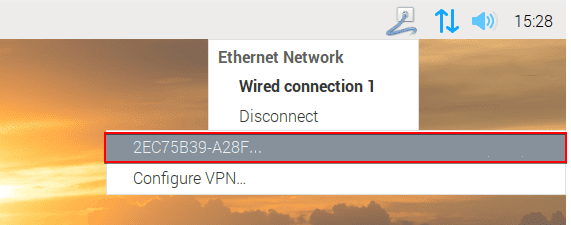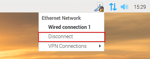To disable the OpenVPN® Raspberry Pi client, tap the Network Connections icon and press the Disconnect button.