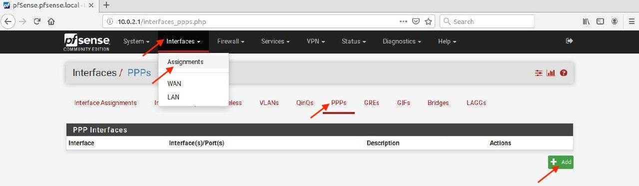 1. Navigate to the Interfaces tab > AssignmentsPPPs and click +Add button.
