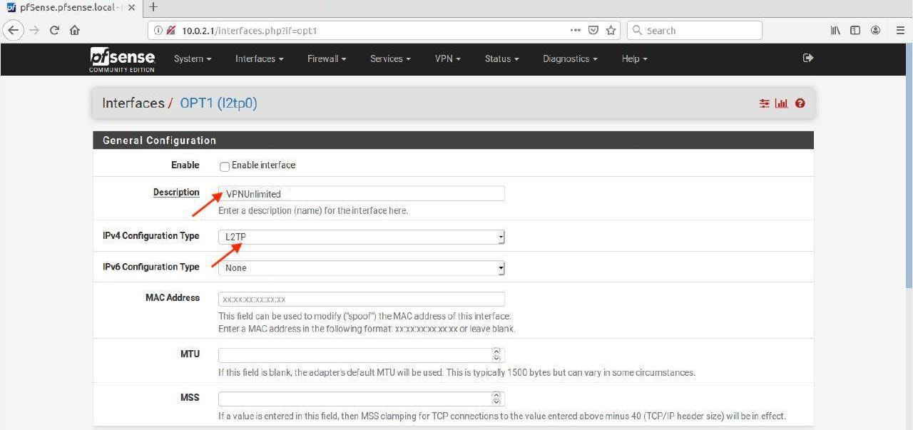 II. Set up L2TP VPN client on your pfSense router