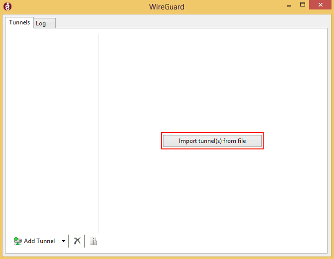 1. Open the WireGuard app, press Import tunnel(s) from file, and select the WireGuard® configuration file that was previously downloaded from your User Office.