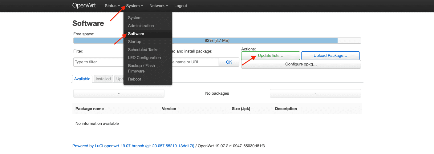 1. 前往 System(系统)> Software(程序)并点击 Update lists(更新列表)。