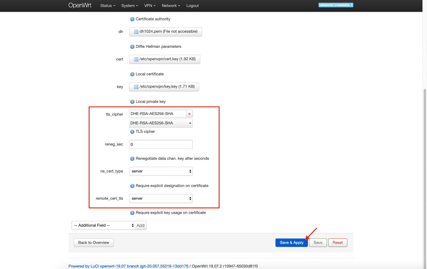 I. 在您的 OpenWrt 19.07 路由器上设置 OpenVPN